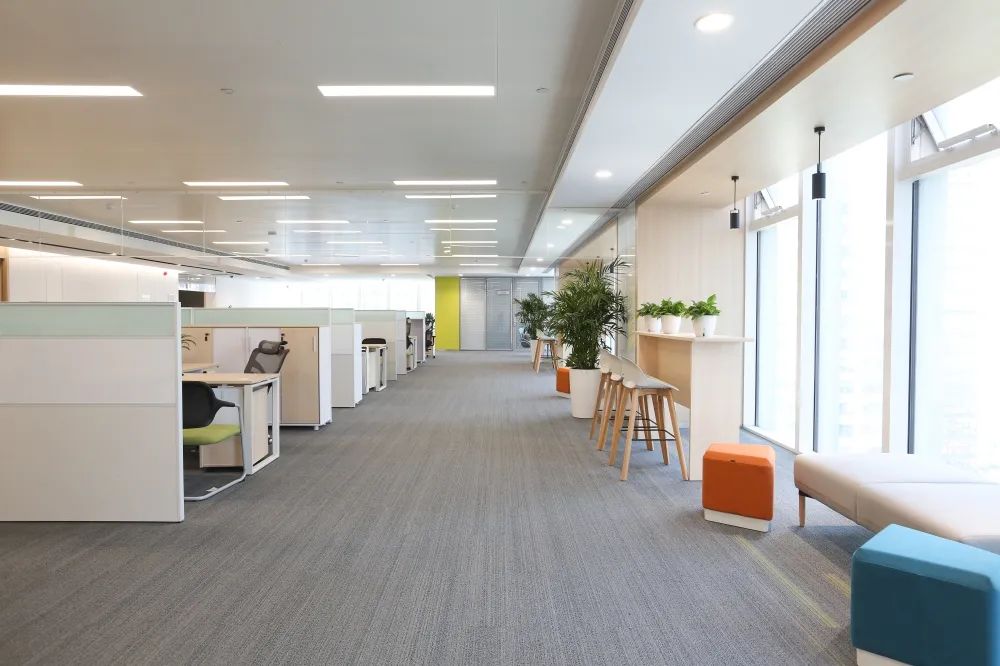 招商銀行杭州分行辦公大樓位于錢江新城核心區中軸線西側,毗鄰市民中心,居CBD區域金融圈之中心,與國際會議中心隔街相望。該項目主要運用高級彈性地板、現代灰大理石、維納斯米黃大理石、圣羅蘭灰石材等材料,白色、米黃色石材運用在視覺上使空間更加寬敞明亮,優雅的高級灰應用在空間中,打造一種低調而舒適的現代簡約氛圍。