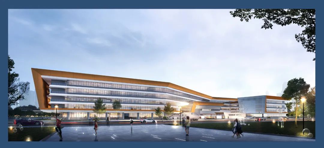 整體造型以現(xiàn)代風格為主,建筑通過形體的穿插,材質的變化,空間的虛實對比,形成輪廓清晰,形體鮮明的整體校園形象。白與橘黃的色彩搭配,使建筑充滿學習氣氛,融入優(yōu)美的自然景觀之中,親切宜人,富有活力。