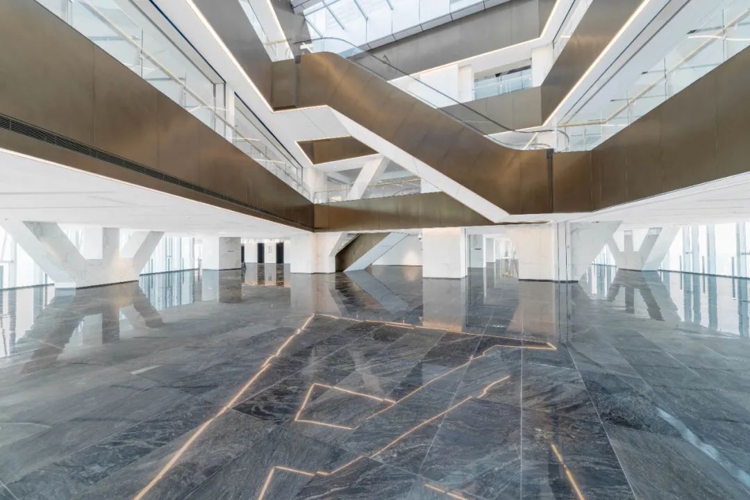 博大具體負(fù)責(zé)A座6-8層及連廊、小中庭和B座34-41層裝修的工作,施工內(nèi)容包含裝飾裝修、電氣、暖通、給排水、消防等,施工面積達(dá)到5萬㎡。