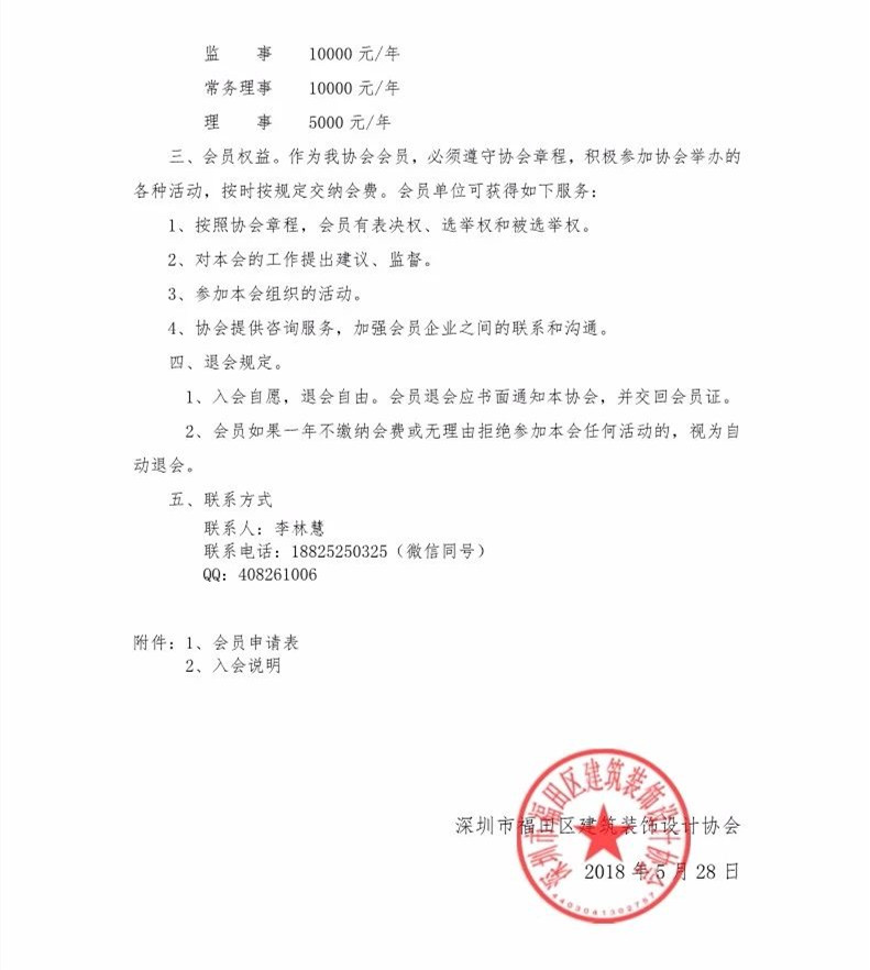 關于發展深圳市福田區建筑裝飾設計協會會員的通知