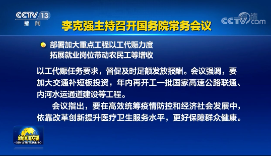 國務院總理李克強6月29日主持召開國務院常務會議,確定政策性、開發(fā)性金融工具支持重大項目建設的舉措,擴大有效投資、促進就業(yè)和消費;部署加大重點工程以工代賑力度,拓展就業(yè)崗位,帶動農民工等增收;決定開展提升高水平醫(yī)院臨床研究和成果轉化能力試點,促進提高醫(yī)療衛(wèi)生服務水平。
